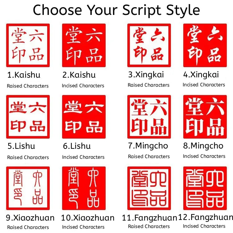 Font Options: We offer classic styles such as Regular Script (Kaishu), Clerical Script (Lishu), Small Seal Script (Xiaozhuan), and more.